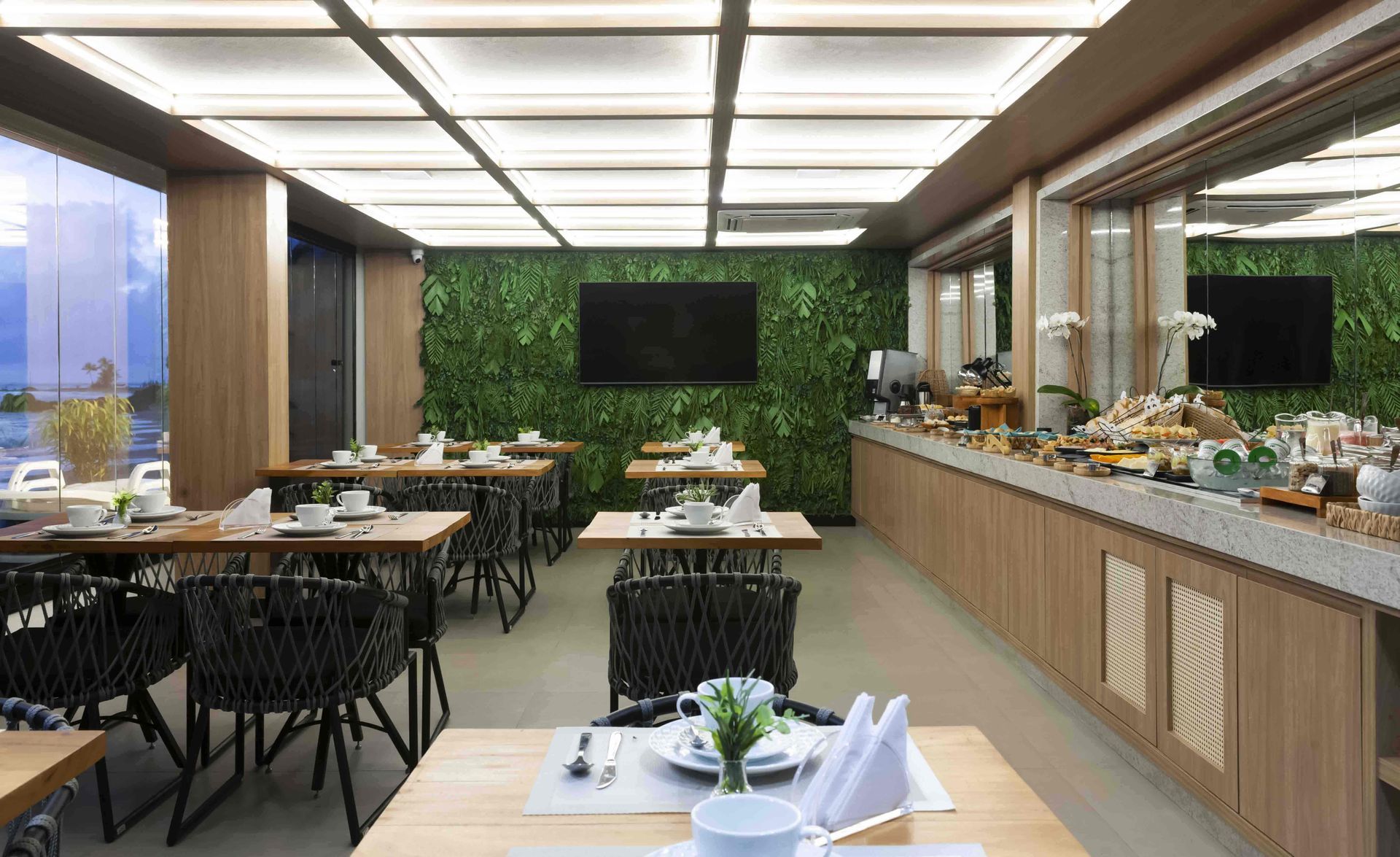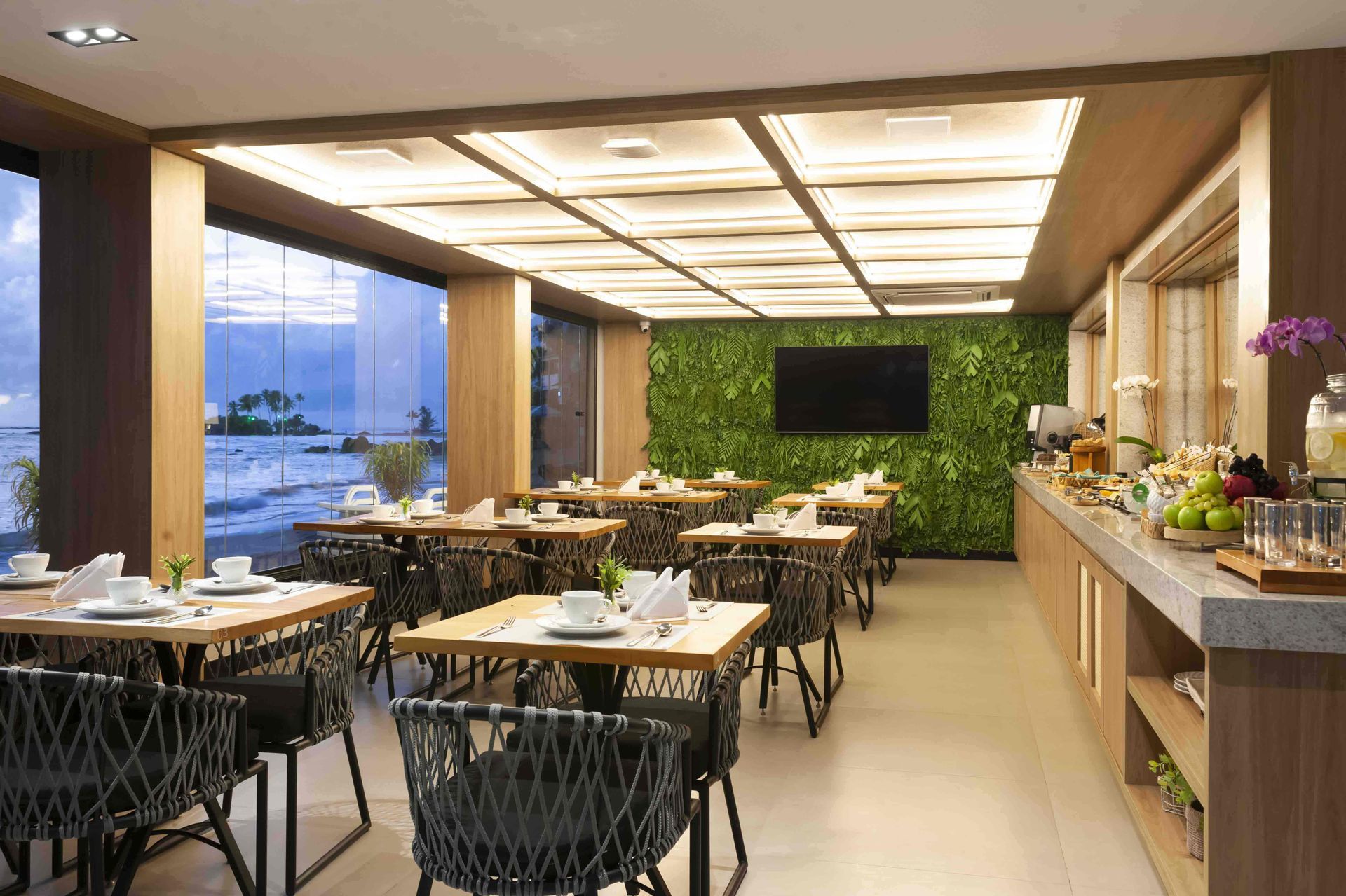 Com uma panorâmica incrível para o mar da Primeira Praia, este apartamento se destaca pela luz natural e pelo design acolhedor.