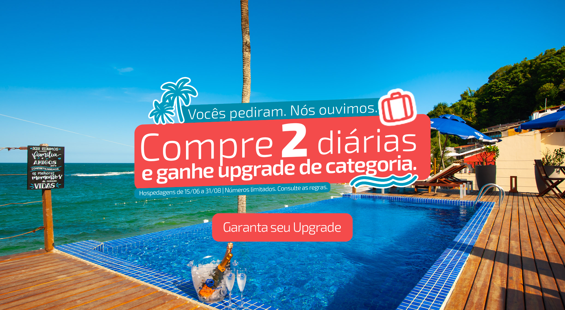 Estrutura aconchegante com opções de acomodações completas para gerar as melhores experiências aos hóspedes que buscam o equilíbrio entre lazer e descanso à beira mar.